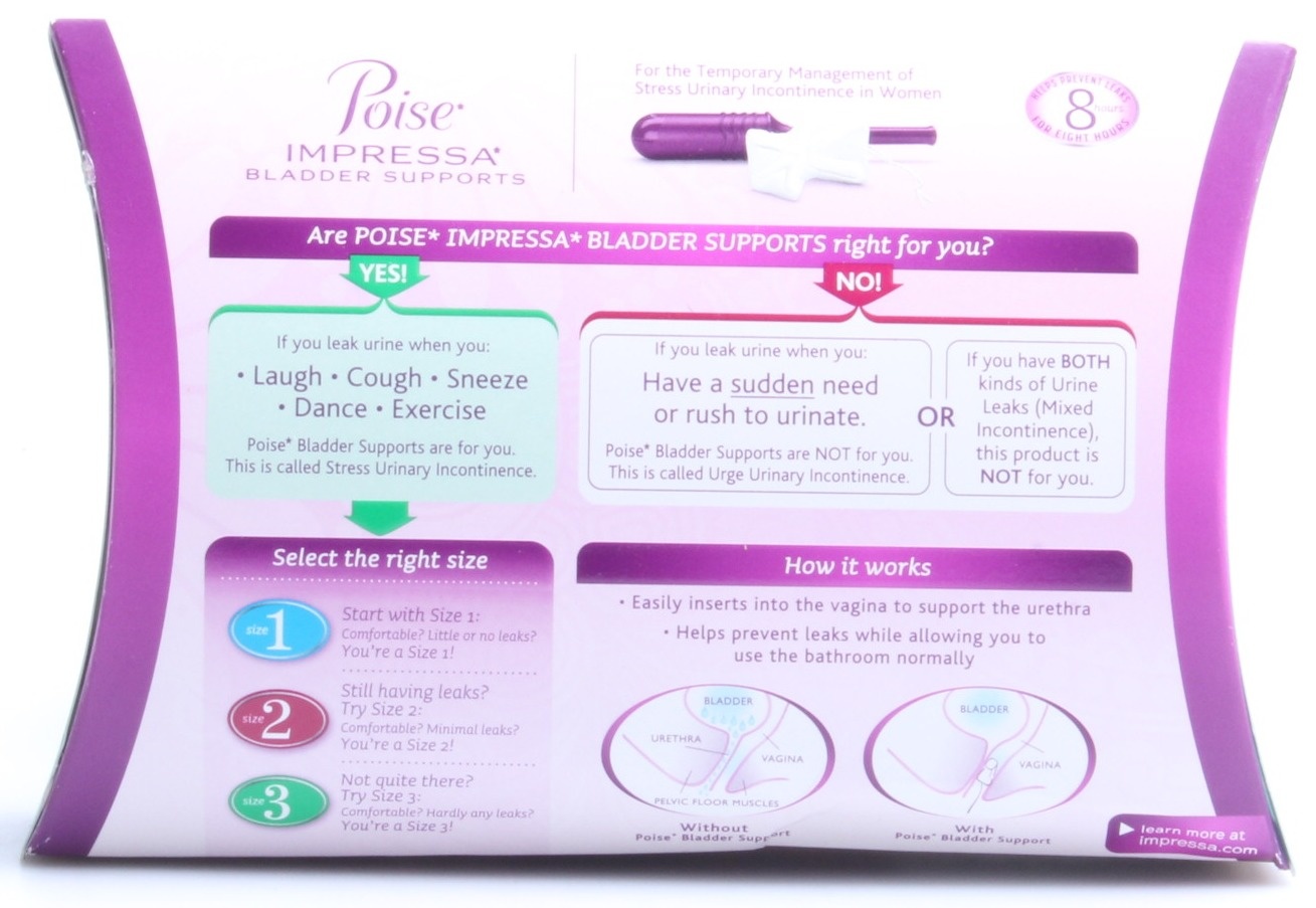 Poise Impressa Bladder Supports Hdis from www.hdis.com Come read my top 6 light bladder leakage tips. Poise impressa bladder supports are designed for women with stress urinary incontinence (sui) symptoms — meaning they leak urine when they laugh, cough, sneeze, dance or exercise. Don't use bulky pads when a super thin poise microliner will work perfect!